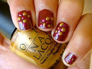 - Dots: fuchsia- OPI The One That Got Away, gold- OPI Bling Dynasty